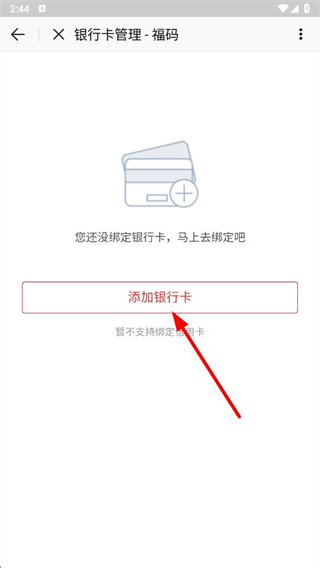 4、在銀行卡管理頁面點擊添加銀行卡按鈕,按提示完成銀行卡綁定操作即可。