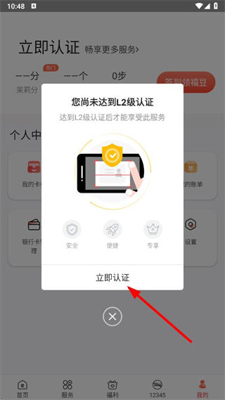 3、在跳出的提示框選項中,點擊立即認(rèn)證,進入認(rèn)證頁面。