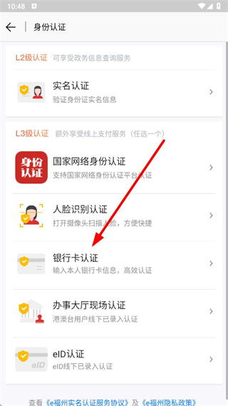 3、在身份認(rèn)證頁面,選擇銀行卡認(rèn)證選項,進入銀行卡認(rèn)證信息填寫界面。