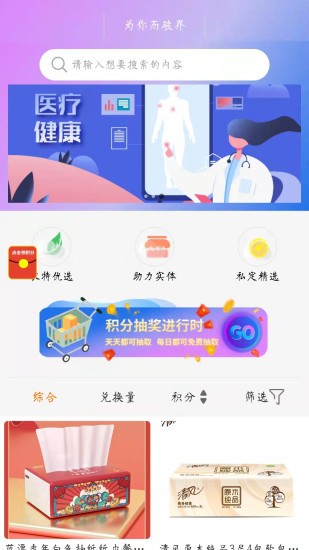 國內(nèi)外兩個市場無縫互通,提供甄選海外特色商品,以及國內(nèi)各省各縣市鄉(xiāng)鎮(zhèn)的農(nóng)特產(chǎn)品,海量優(yōu)選好物,用戶純積分兌換,依靠社區(qū)便民服務(wù)中心,線下快速領(lǐng)取,線上線下互動,打破場景限制,提升用戶的購物體驗