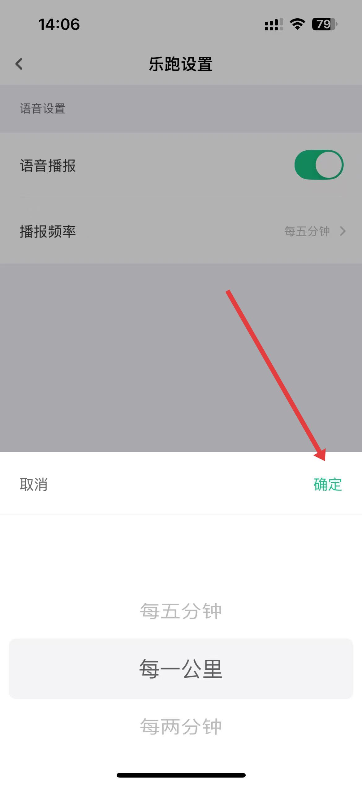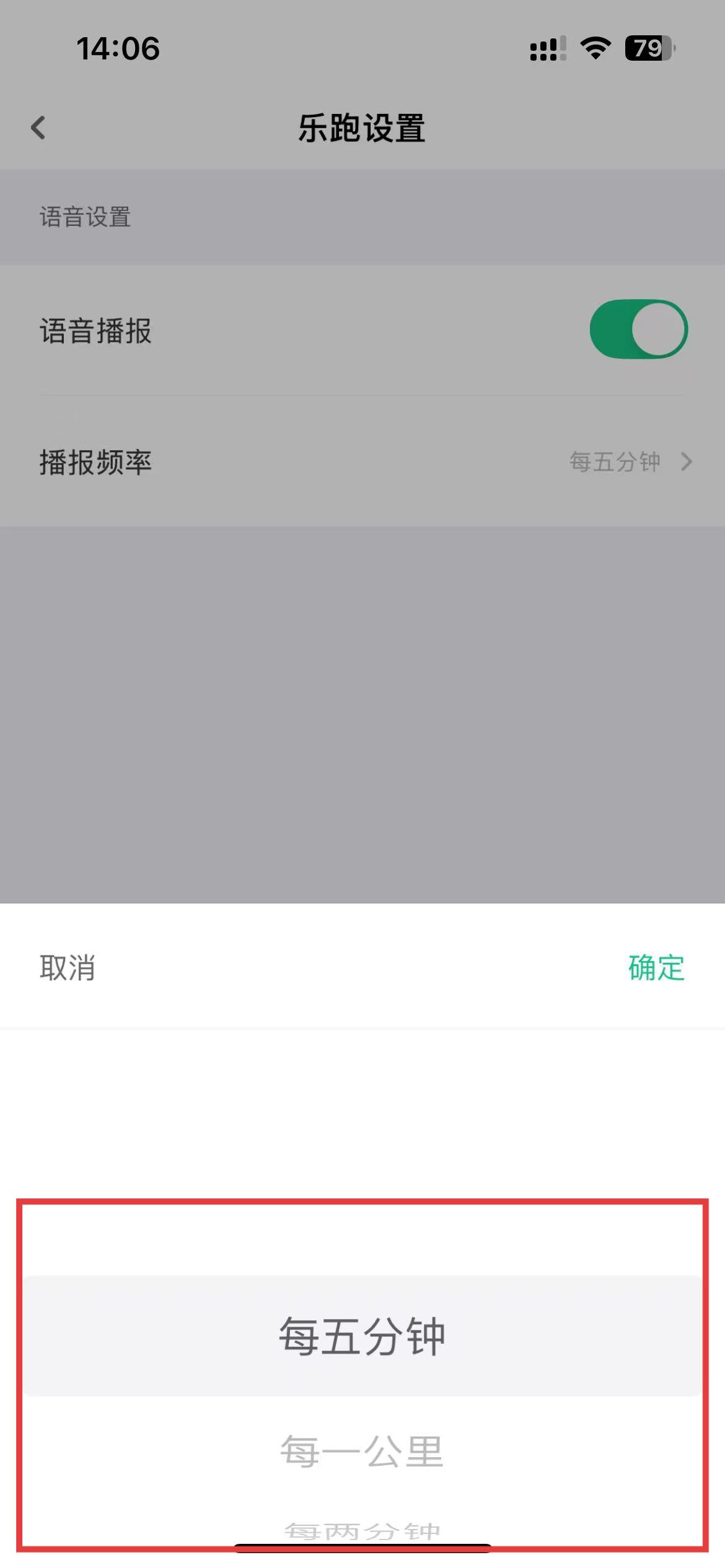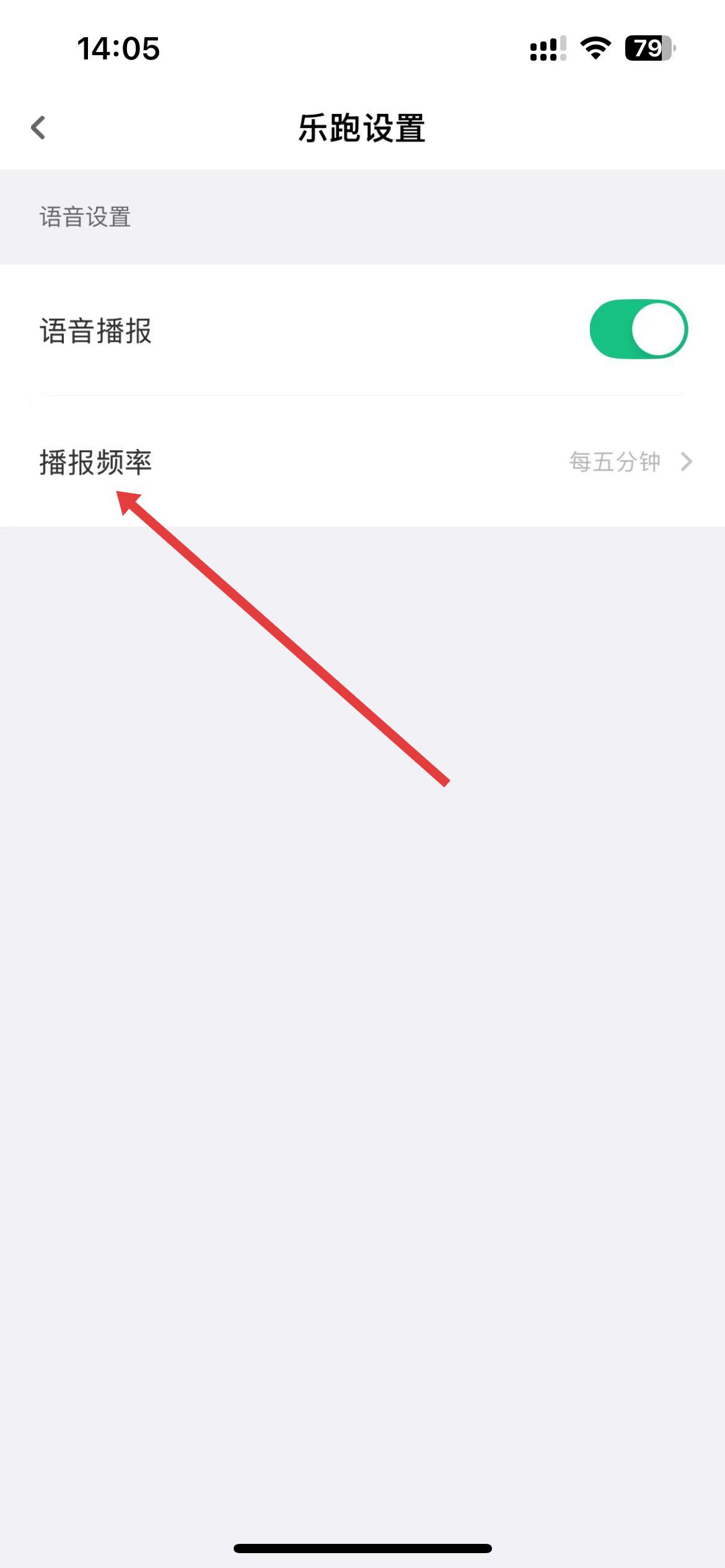 2、在樂跑設置頁面里,找到播報頻率選項并點擊,會彈出頻率選擇列表。