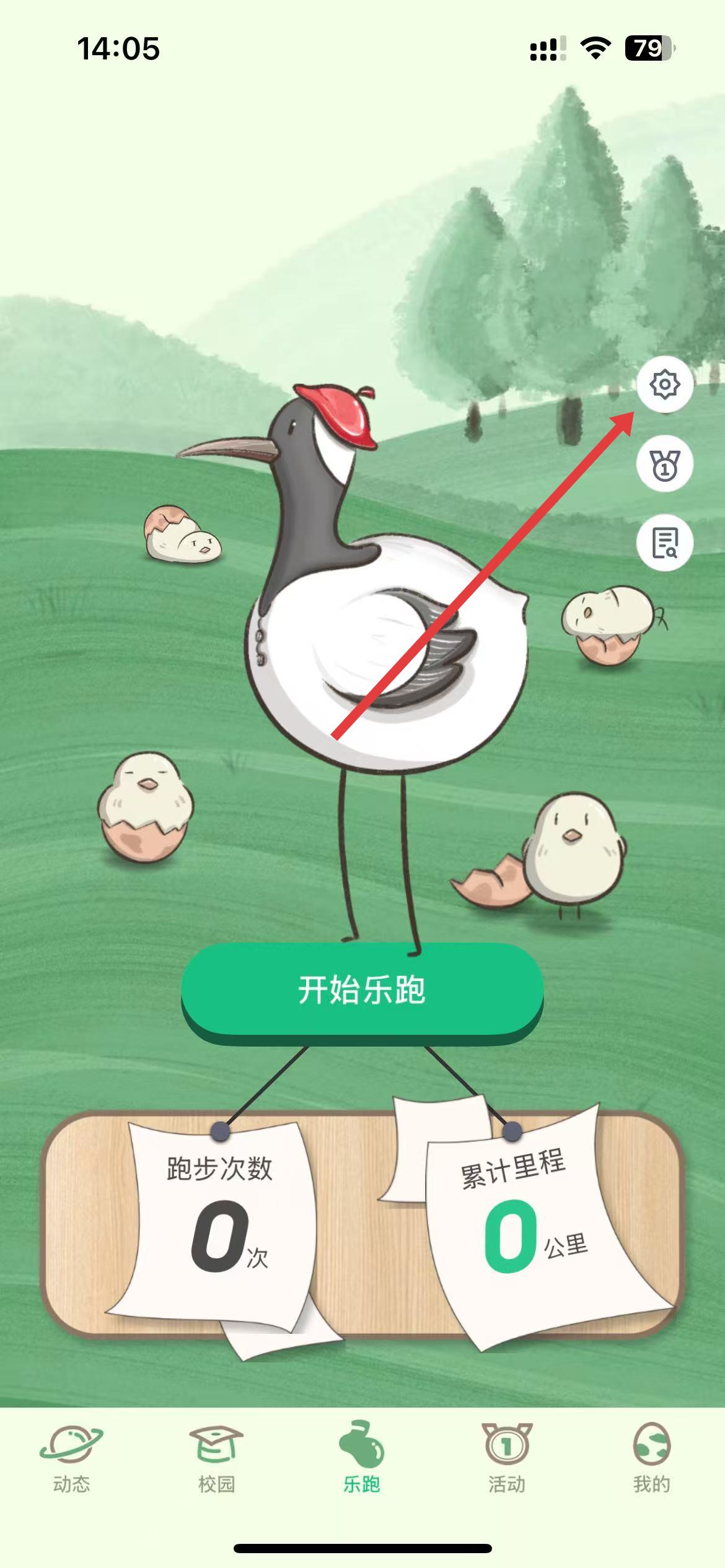 1、打開步道樂跑app,在樂跑主界面中,點擊右上角的設置圖標,進入樂跑設置頁面。