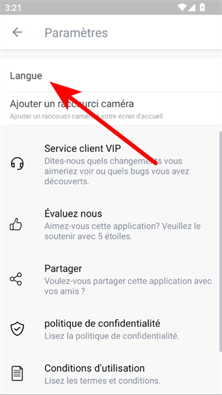 2、在設(shè)置頁面點(diǎn)擊Langue,進(jìn)入語言選擇頁面。