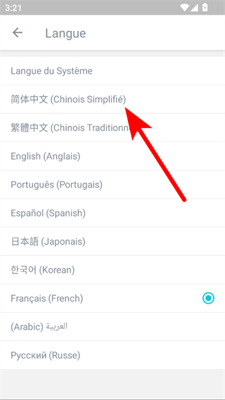 3、在語言選擇頁面點(diǎn)擊簡體中文(Chinois Simplifié),彈出確認(rèn)切換語言的提示框。
