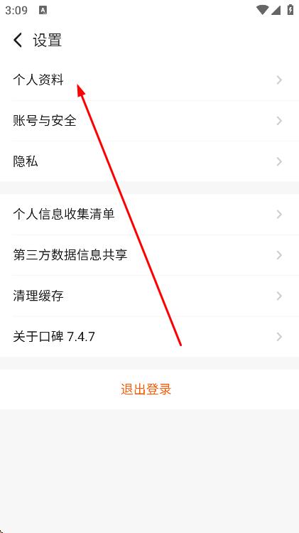 3、進(jìn)入設(shè)置頁面,點(diǎn)擊個人資料選項(xiàng)。