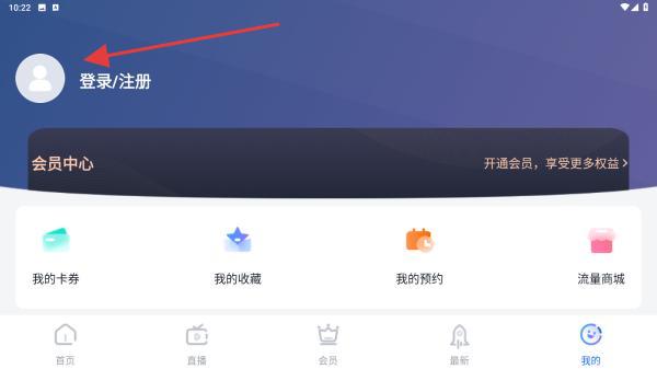 2、在個(gè)人中心頁(yè)面,用戶(hù)需點(diǎn)擊左上角的登錄/注冊(cè)的按鈕。