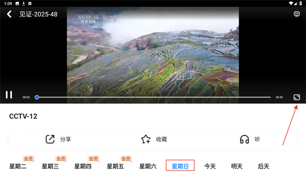 3、進(jìn)入播放的頁(yè)面內(nèi),點(diǎn)擊畫(huà)面中右側(cè)全屏的按鈕能夠更好觀看。