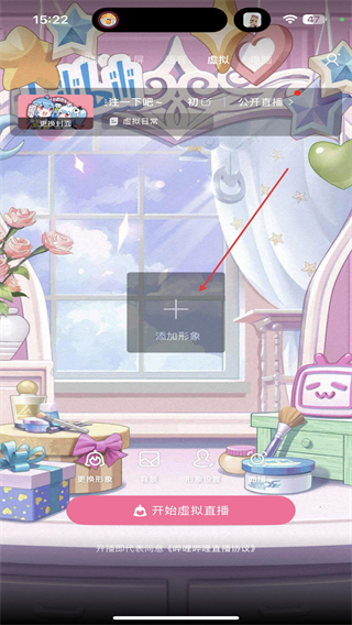 2、進入虛擬的界面內(nèi),點擊正中間添加形象的功能按鈕。