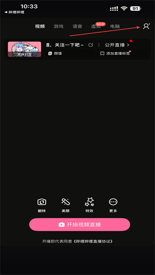 一鍵開播功能,登錄后可直接推流至嗶哩嗶哩直播間,只需手指輕輕一點