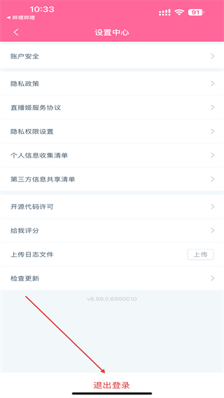 3、進入設(shè)置中心的頁面內(nèi),點擊最下方退出登錄的按鈕。