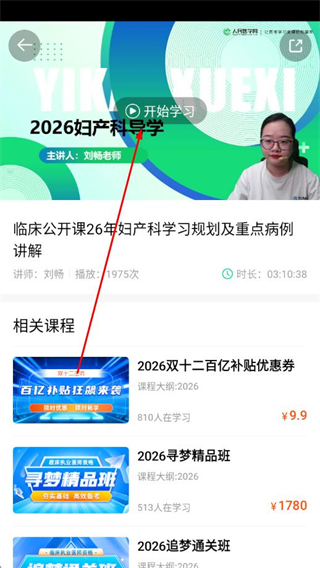 3、在課程詳情頁面點(diǎn)擊開始學(xué)習(xí),即可收聽該課程內(nèi)容。