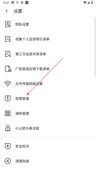 3、在設置頁面中找到權(quán)限管理選項,點擊該選項進入權(quán)限管理的操作頁面。