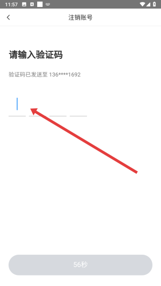 4、在獲取到驗(yàn)證碼后,點(diǎn)擊箭頭指向處填寫驗(yàn)證碼完成注銷賬號(hào)操作。