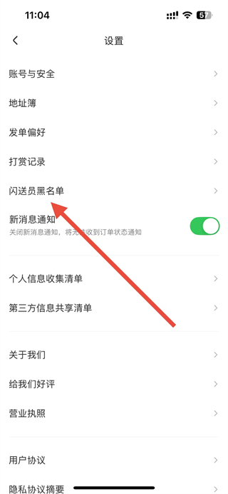 3、在設(shè)置頁面點(diǎn)擊閃送員黑名單選項(xiàng)。