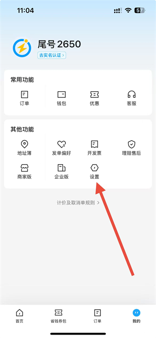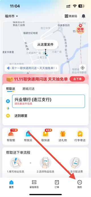 1、可以點(diǎn)擊閃送頁面下個(gè)人中心按鈕,進(jìn)入到個(gè)人中心頁面。