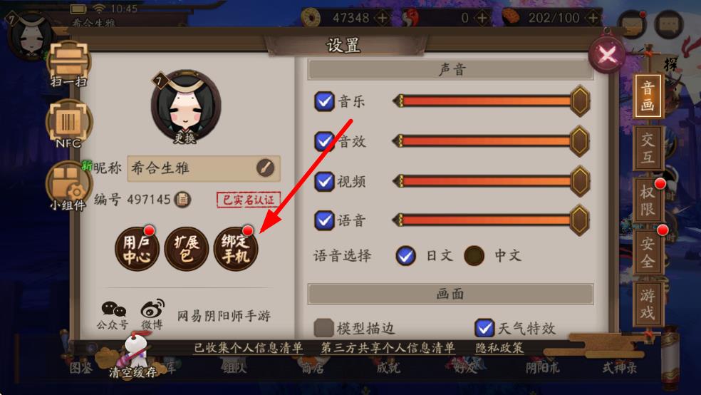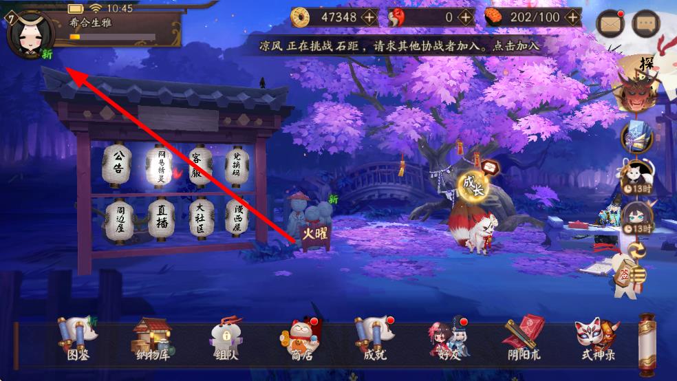 1、點擊陰陽師游戲主界面左上角的頭像,進入設置界面。