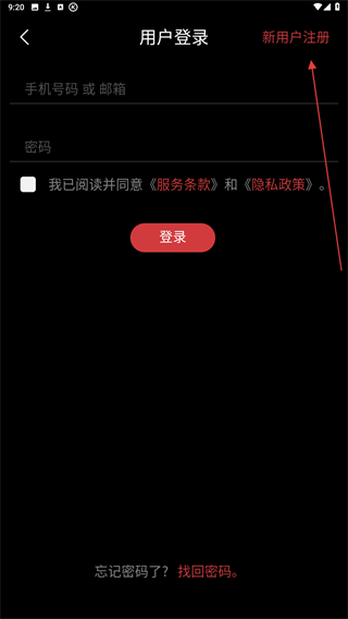 2、進(jìn)入用戶(hù)登錄的界面內(nèi),點(diǎn)擊右上角新用戶(hù)注冊(cè)的按鈕。