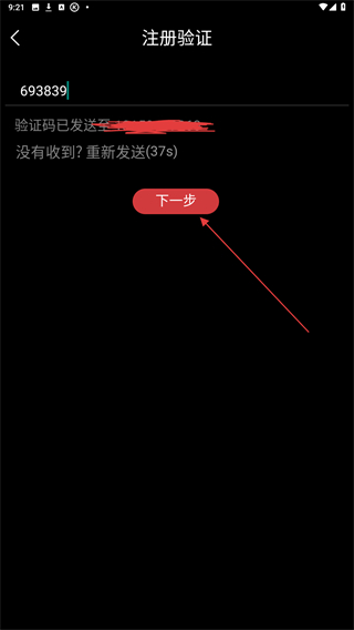 4、將收到的驗(yàn)證碼輸入其中后,用戶(hù)需再點(diǎn)擊下一步的按鈕。