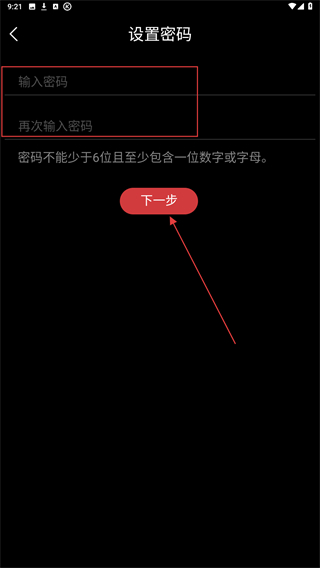 5、進(jìn)入到最后一步,設(shè)置好密碼后點(diǎn)擊下一步即可完成注冊(cè)。