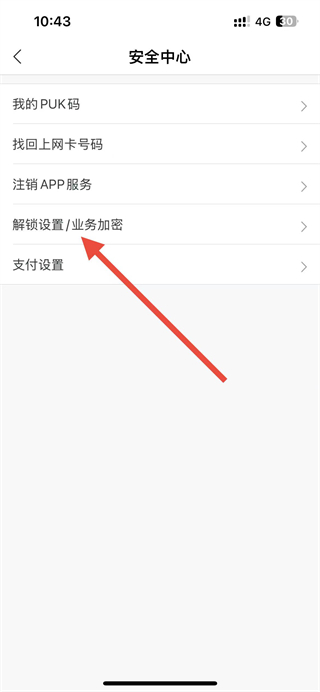 3、在安全中心頁(yè)面點(diǎn)擊解鎖設(shè)置業(yè)務(wù)加密選項(xiàng),進(jìn)入解鎖設(shè)置頁(yè)面。