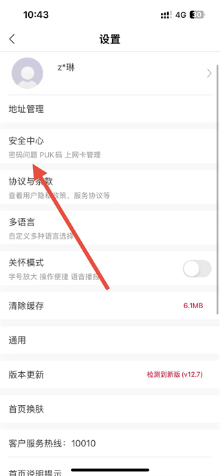 2、在設(shè)置頁(yè)面點(diǎn)擊安全中心選項(xiàng),進(jìn)入安全中心頁(yè)面。