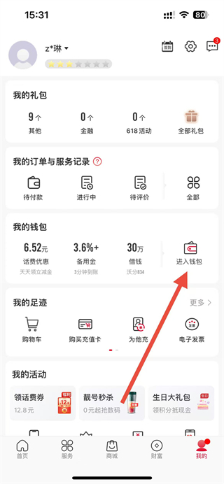 1、在app底部點(diǎn)擊我的選項(xiàng),在個(gè)人頁(yè)面點(diǎn)擊進(jìn)入錢包選項(xiàng),進(jìn)入我的錢包頁(yè)面。