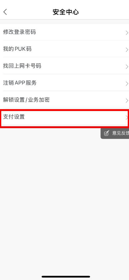 3、進(jìn)入安全中心頁(yè)面后,點(diǎn)擊支付設(shè)置。