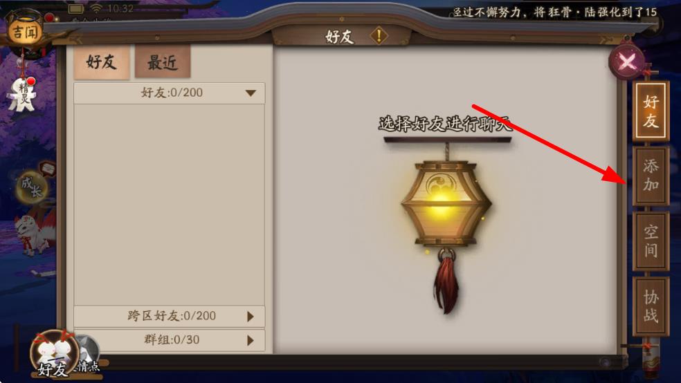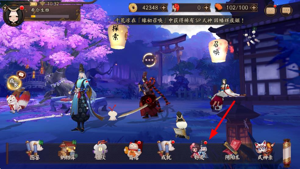1、進入陰陽師游戲主界面,點擊下方菜單欄中的好友圖標。