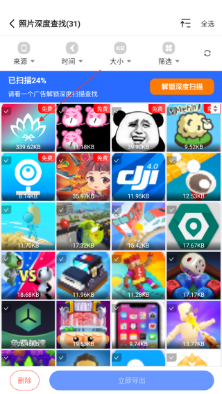 2、掃描完成后,在圖片列表中選擇需要深度查找的圖片,點(diǎn)擊圖片進(jìn)入照片預(yù)覽界面。