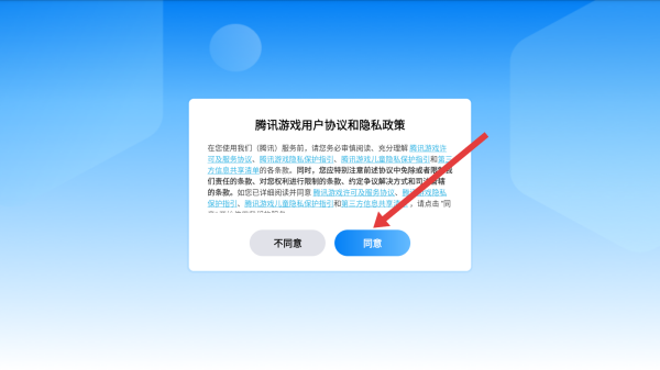 1、啟動游戲時,彈出騰訊游戲用戶協(xié)議和隱私政策彈窗,點擊同意按鈕,進入節(jié)奏大師登錄界面。