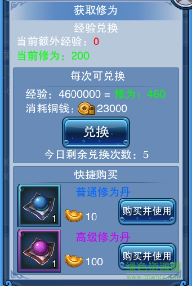 1、轉(zhuǎn)生所需要消耗的修為可通過經(jīng)驗兌換或商城購買修為丹獲得。經(jīng)驗兌換修為每天可兌換5次,兌換次數(shù)0點重置。