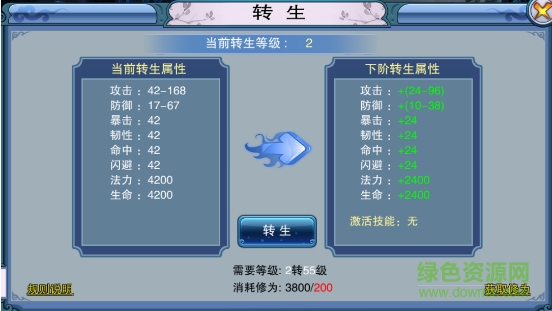 1、轉(zhuǎn)生需要滿足等級條件,并且消耗對應(yīng)的修為。