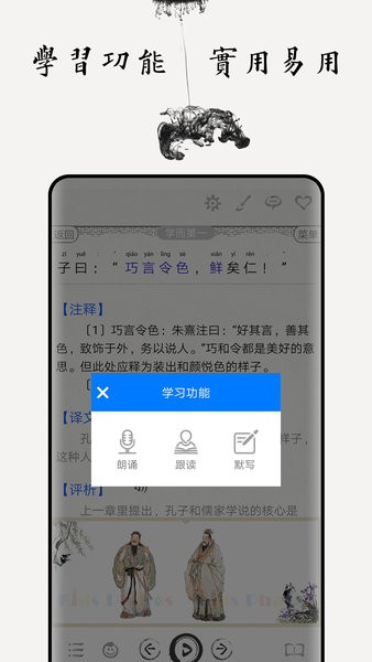 學(xué)習(xí)中國古典文化作品的軟件,這里擁有論語全本資源,全部采用語音模式講解,讓你可以學(xué)得更好!