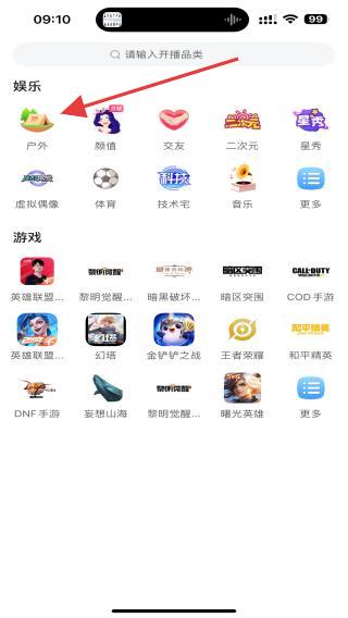 1、打開虎牙助手APP,在娛樂的區(qū)域選擇你要開直播的類型,選擇并點(diǎn)擊。
