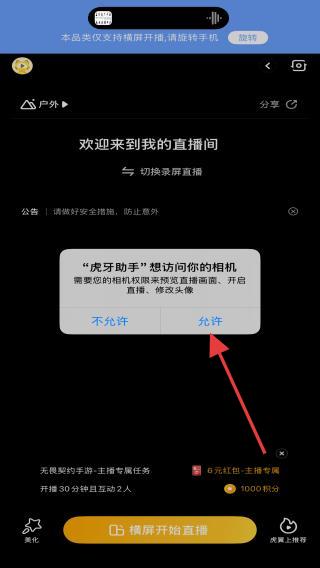 2、開播前,會(huì)彈出想訪問你的相機(jī)的提示,點(diǎn)擊允許的按鈕。