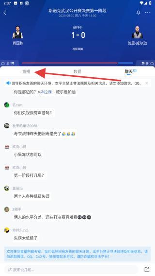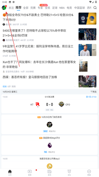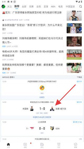 1、打開直播吧app,在推薦的頁面內(nèi)找到正在直播比賽的內(nèi)容,點擊即可跳轉到該頁面。