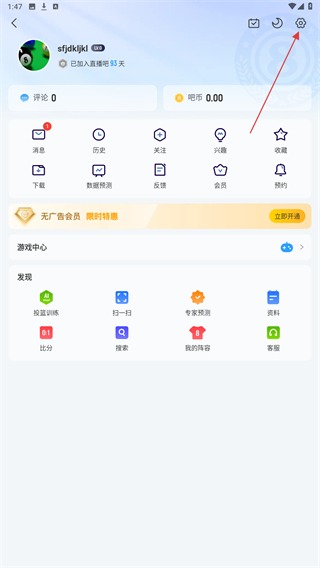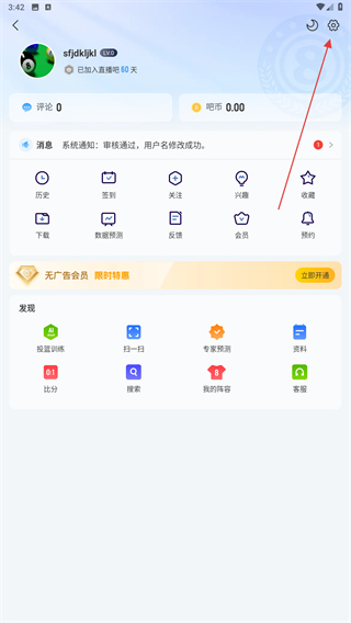 2、在個人中心的界面內(nèi),點擊右上角設置的功能按鈕。
