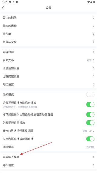 3、進入設置的頁面內(nèi),點擊下方未成年人模式。