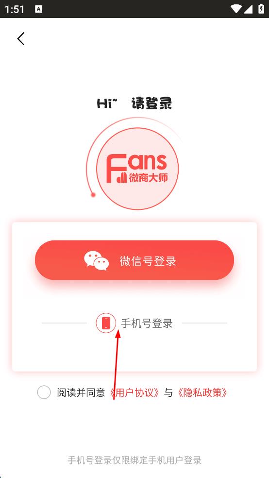 3、勾選閱讀并同意用戶協(xié)議與隱私政策,選擇手機號登錄,進入驗證碼登錄頁面。