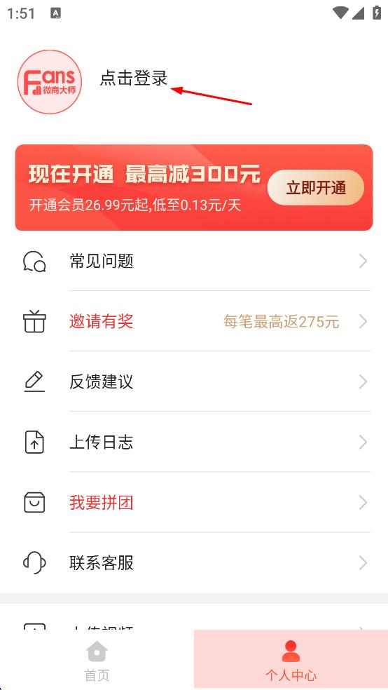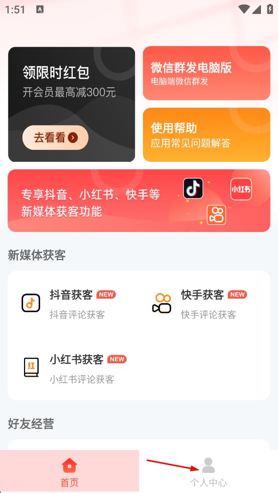 1、打開微商大師軟件,點擊右下角個人中心,進入個人中心頁面。