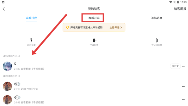 3、在我的訪客頁面中可以查看誰瀏覽了我的空間,也可以點擊我看過誰按鈕,查看自己的瀏覽記錄。
