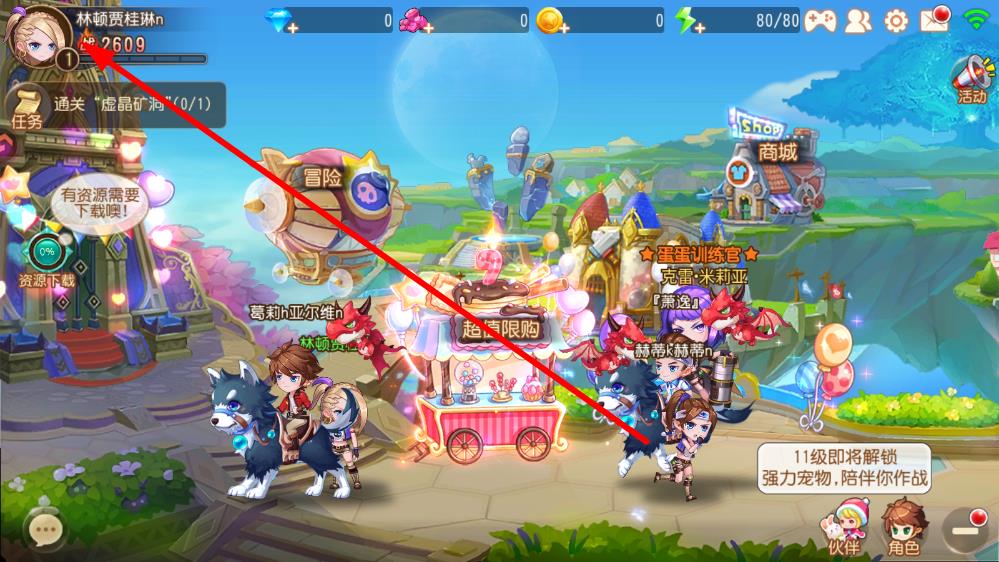 1、進(jìn)入彈彈島2游戲主界面,點(diǎn)擊左上角角色頭像。