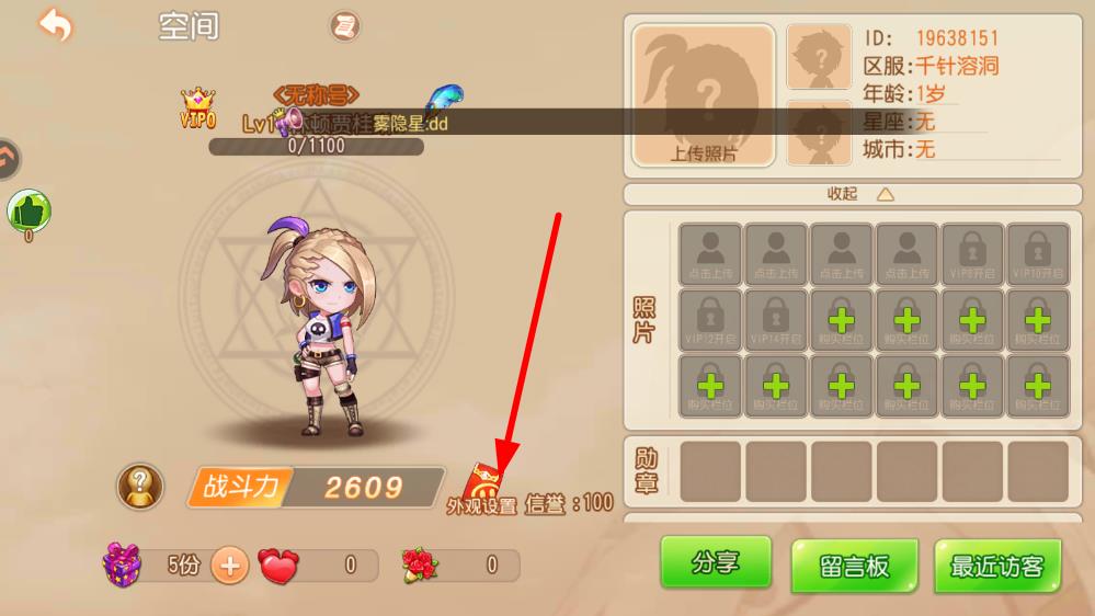 2、在打開(kāi)的空間界面中,點(diǎn)擊外觀設(shè)置按鈕。
