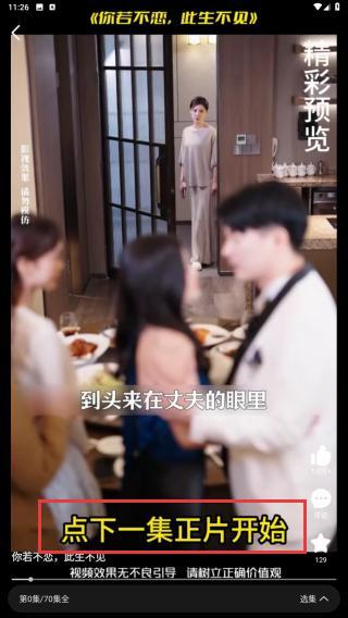 3、在短劇詳情頁,點擊封面的播放按鈕,若開頭為預覽片段,需根據(jù)提示:如點下一集正片開始切換至正片播放。