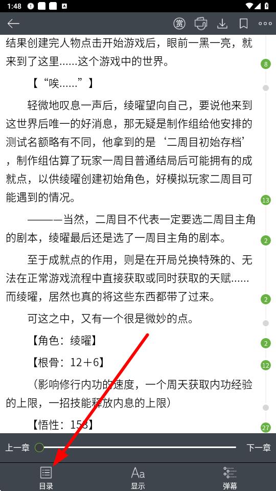 2、進(jìn)入小說(shuō)閱讀頁(yè)面后,點(diǎn)擊底部的目錄按鈕。