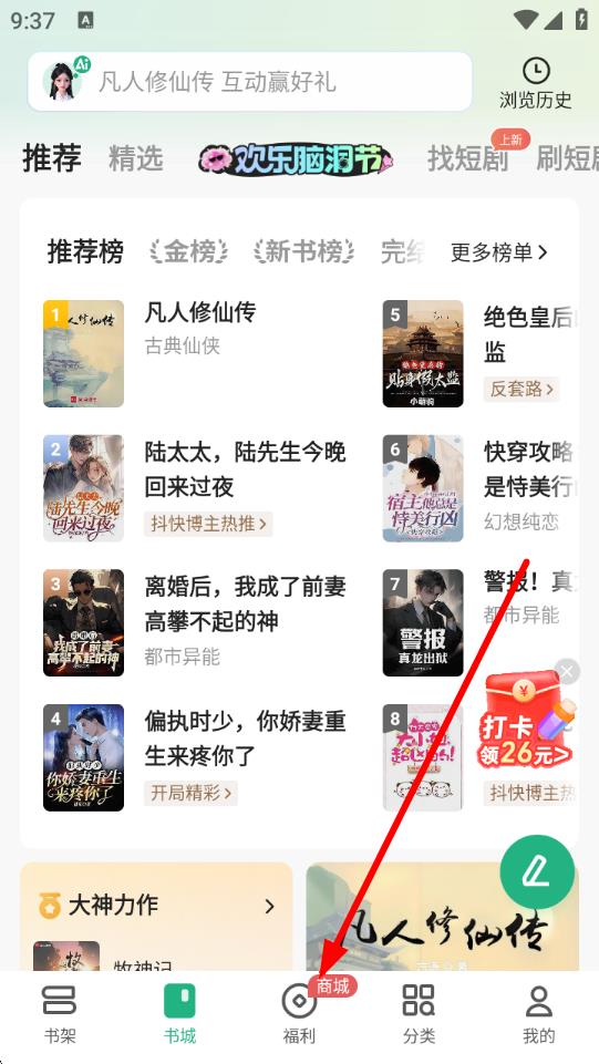1、打開書旗小說APP,點(diǎn)擊底部導(dǎo)航欄中的福利,進(jìn)入福利中心界面,這里有多種賺取金幣的活動(dòng)和入口。