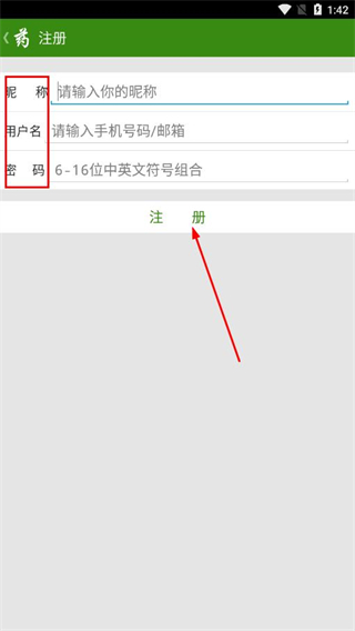 4、在注冊頁面填寫昵稱、用戶名、密碼后,點擊注冊。