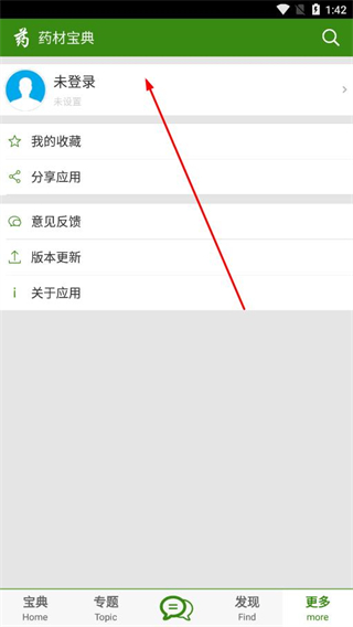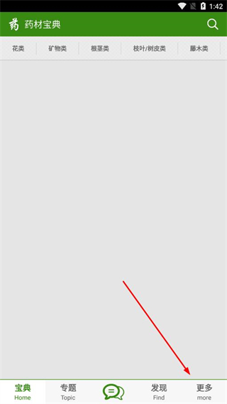 1、打開藥材寶典APP,點擊導(dǎo)航欄中的更多。
