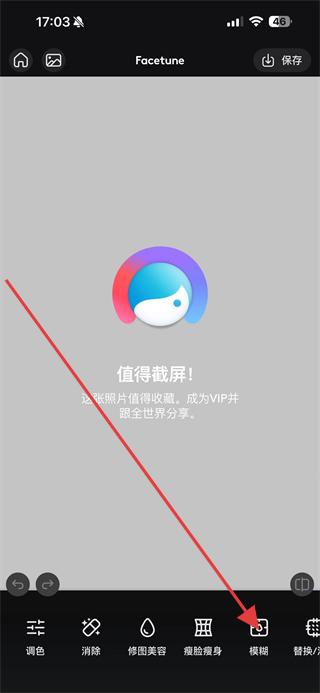 3、照片導(dǎo)入后,點(diǎn)擊底部的模糊按鈕,進(jìn)入模糊效果編輯界面。