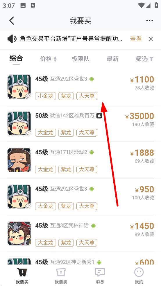 3、進入游戲角色交易頁面后,查看展示的角色信息,選擇心儀角色,按后續(xù)提示操作完成購買。